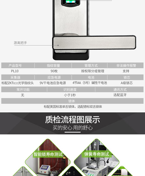 商品名稱:中控智慧(zkteco)PL10指紋鎖智能鎖電子機械鎖家用防盜門鎖