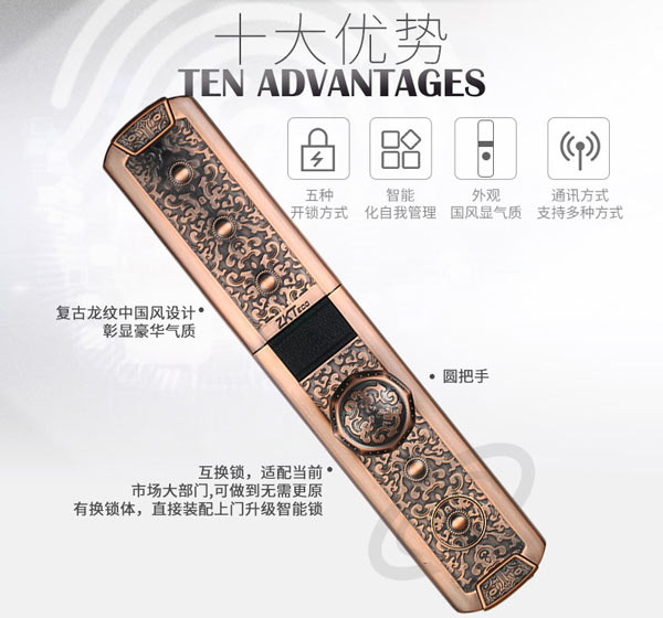 商品名稱:中控智慧(ZKTeco)CL100指紋鎖家用別墅防盜電子門鎖手機APP遠程遙控智能密碼鎖 (指紋+密碼+刷卡+鑰匙+手機APP)青古銅 標配