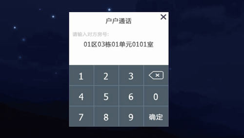 1)輸入對(duì)方房號(hào)進(jìn)行戶戶通話,數(shù)字鍵輸入房號(hào), X 刪除錯(cuò)誤輸入,確認(rèn)后呼出,例如呼叫1區(qū)1棟1單元101戶業(yè)主,如圖3.2.1: