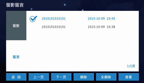 2)點(diǎn)擊查看按鈕可查看留影與留言的內(nèi)容,可通話刪除和全刪除來進(jìn)行刪除操作。