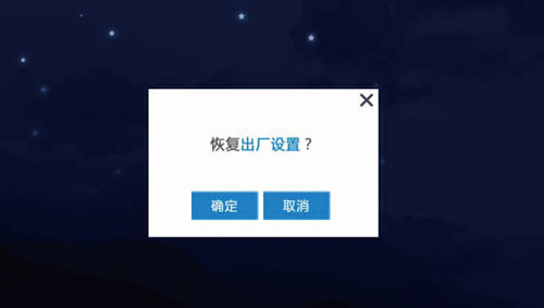 1)點(diǎn)擊系統(tǒng)復(fù)位,提示是否恢復(fù)出廠設(shè)置,點(diǎn)擊確認(rèn)實(shí)現(xiàn)系統(tǒng)復(fù)位,刪除本設(shè)備的房號(hào),小區(qū)信息等數(shù)據(jù);點(diǎn)擊取消則取消復(fù)位,如圖3.8.6: