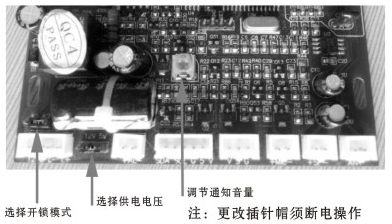 主機主板上的"K1-K4"插針(如圖10所示)是設置開鎖信號的,出廠時主機默認是接普通電鎖的(默認是短接K1,如圖11所示),如果使用磁力鎖或電插鎖,那么把插針帽換插到"K2"和"K3"插針的位置(即短接"K2"和"K3"插針,如圖12所示),如果需要輸出低電平信號,那么短接"K4"插針即可.